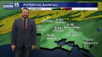Rain chances return to the forecast later this morning and will continue off and on throughout the day. Temperatures climb to near 80 this afternoon with some gusty winds. Tonight, skies will be cloudy as temperature drop to near 70. Patchy fog is possible closer to daybreak.