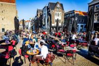 People sit outside on a sunny afternoon in Dordrecht, Netherlands, on March 10.