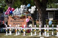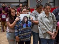 Esmeralda Bravo, center, holds a picture of her granddaughter Nevaeh Bravo, who was killed at Robb Elementary School along with 18 other child…