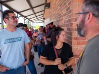 Michael Cavasos, 40, left, Brenda Perez, 39, right, and Eduardo Galindo, 57, wait in line to donate blood the day after the deadly mass shooting.